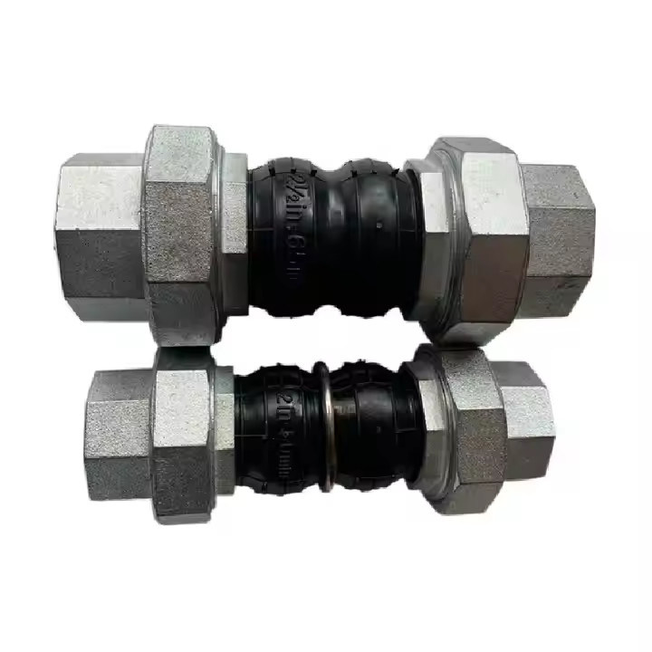 The threaded rubber joint is composed of an inner layer, reinforcing layer, outer rubber layer, composite mold vulcanization molding and rubber double ball with metal parallel movable joint. It features high pressure resistance, excellent elasticity, large displacement capacity, effective shock absorption and noise reduction, flexible installation, and long service life. Ideal for water heating systems, circulating water pipelines, sanitary pipelines, and chemical or refrigeration pipelines in hotels, factories, and residential areas.